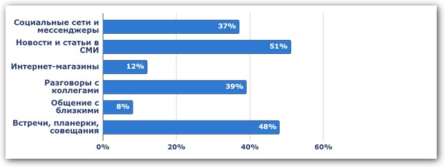 • Встречи, планерки, совещания — 48%.